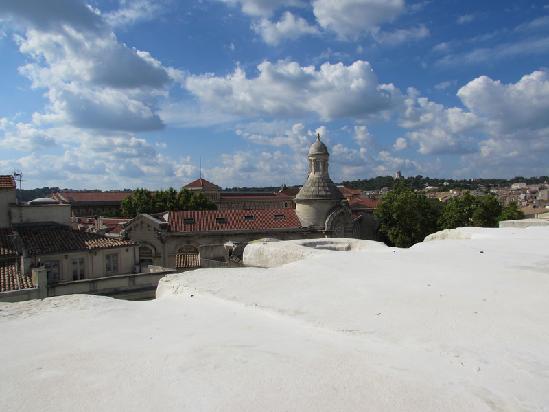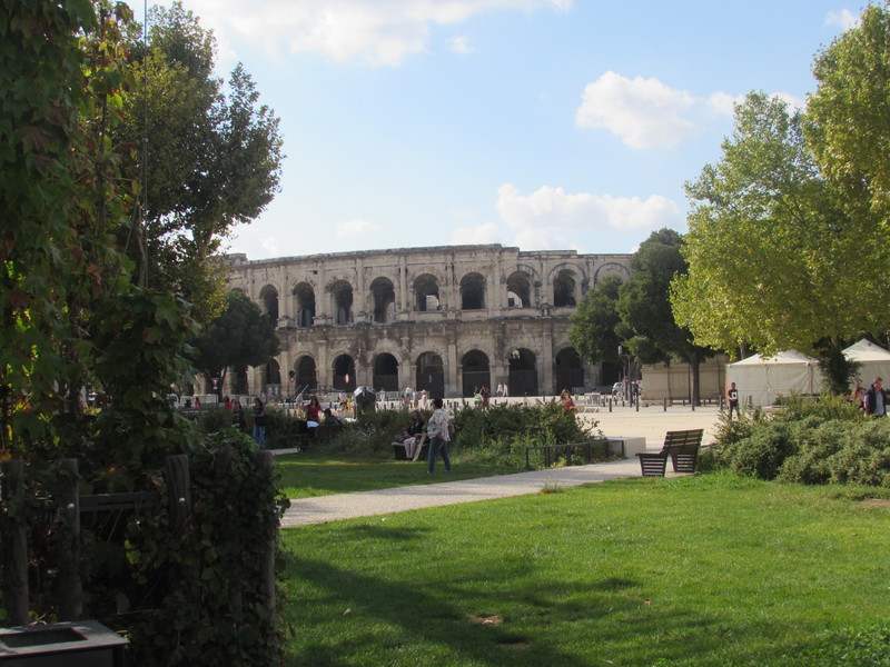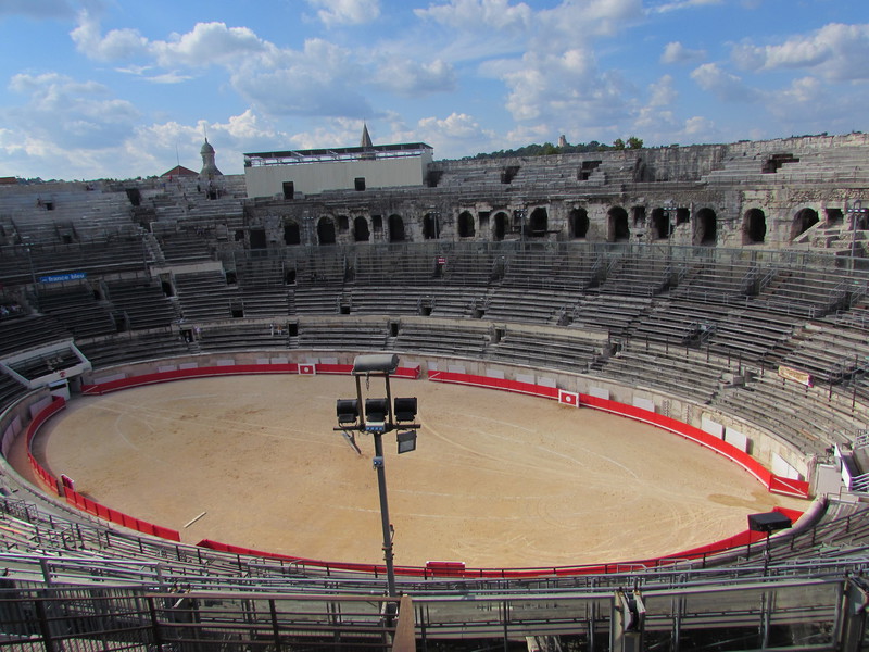In Nîmes wurde das Amphitheater zwischen 90 und 120 n. Chr. nach Vorbild des römischen Kolosseums erbaut. Während der Völkerwanderung diente es als Fluchtburg. 1863 wurde es in eine Stierkampfarena umgewandelt und heute finden dort auch andere Veranstaltungen statt.